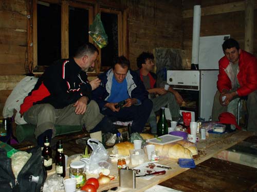 Ovaj vikend nismo bili sami. Došli su nam prvi gosti - četiri planinara iz bratskog planinarskog društva "Jelenčica" iz Rožaja. To su mladići koji nas uvek dočekuju na Hajli i obezbeđuju ekipu prilikom uspona. Proveli smo lepo veče uz piće i smeh. Neki su, naravno, bolje podneli piće a neki lošije ali se to sve sredilo sutradan uz veselo podsećanje na dogodovštine iz prethodne večeri. Ovaj put smo doneli jednu malu peć, tzv. "kraljicu", i smestili je u spavaću sobu tako da smo spavali prvi put u toploj sobi. Postavili smo prozore u potkrovlje (tzv. "kalkane") i započeli postavljanje lamperije po unutrašnjoj strani krova. To je priprema za galeriju koju smo predvideli za spavanje i odmor i nadamo se da će se svideti svima a posebno deci.