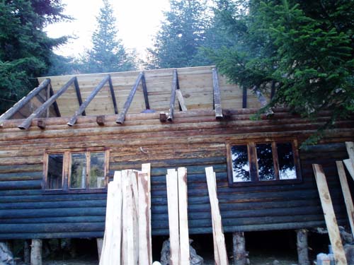 Počeli smo sa prenošenjem dasaka i pokrivanjem krova. Daske su bile sirove i teške tako da smo se i tu dosta namučili ali je dom počeo da dobija željenu formu.